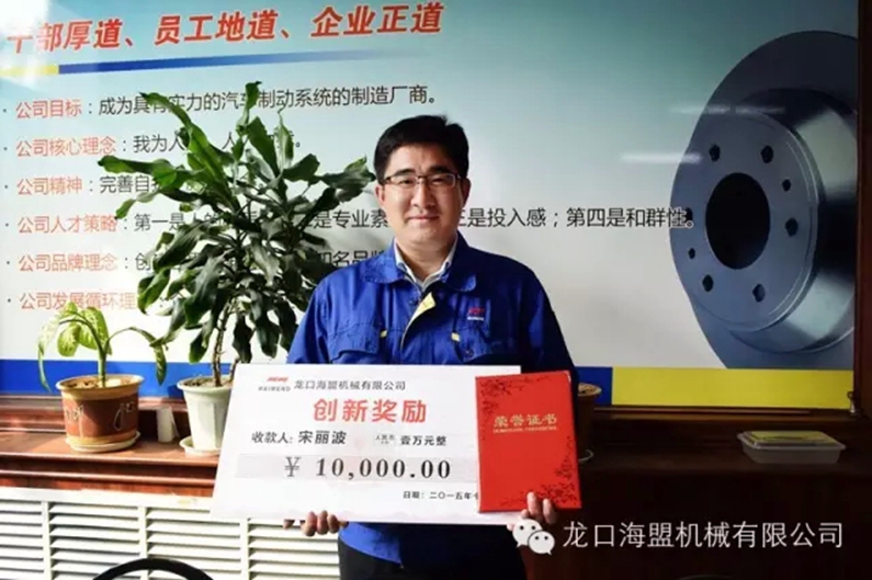 他是一个聪敏好学、善于钻研,脚踏实地又敢于创新的人,他善于观察、善于从不同角度拓宽思路,从而解决工作中存在的实际问题;2015年10月,他在工作中的一个创新(一种可加工孔,又可对孔两端进行倒角的新型刀具)获得国家专利授权,这项专利在公司应用后,将原来需要用2台设备、2次装夹才能完成的工作,减少为仅需一次装夹、一支刀具就可完成的简单工作。他就是公司技术部副经理宋丽波。因他发明的专利技术大大降低了员工的劳动强度、提高了工作效率和加工精度,为公司节约了大量的生产成本,公司给与他个人10000元人民币的物质奖励。