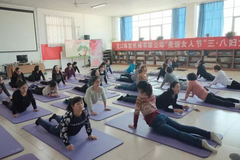 公司为了增进女职工之间的交流,加强团队凝聚力,促进团队和谐发展,缓解紧张的工作气氛,为广大女职工安排了舒缓身心的瑜伽课程。